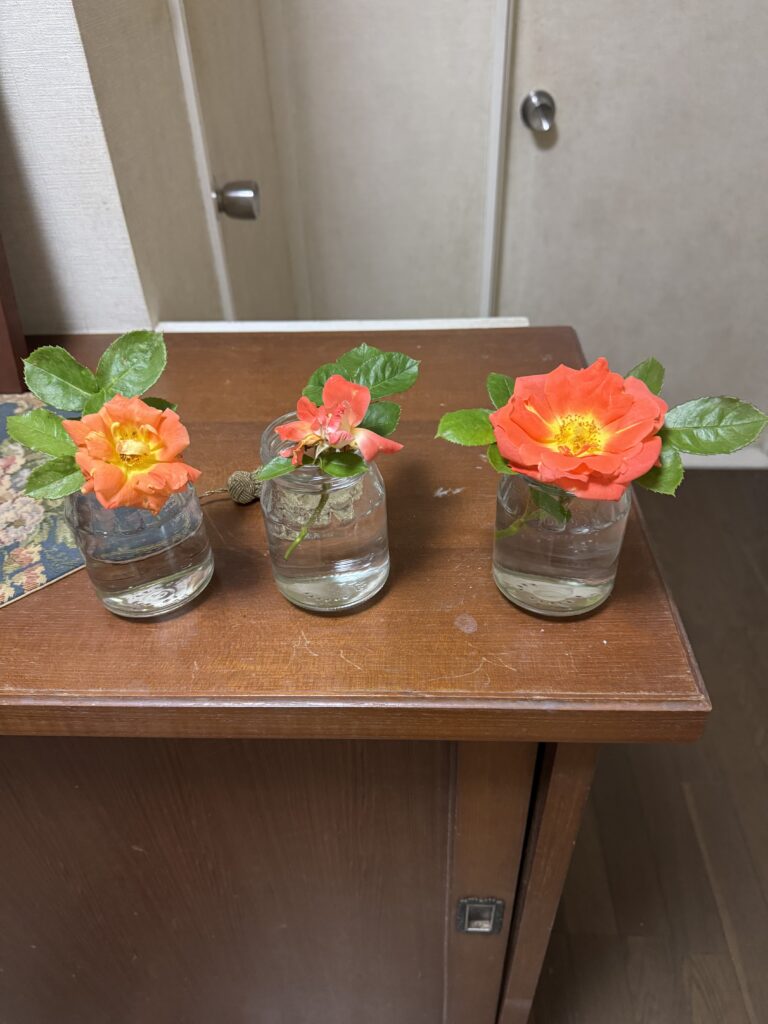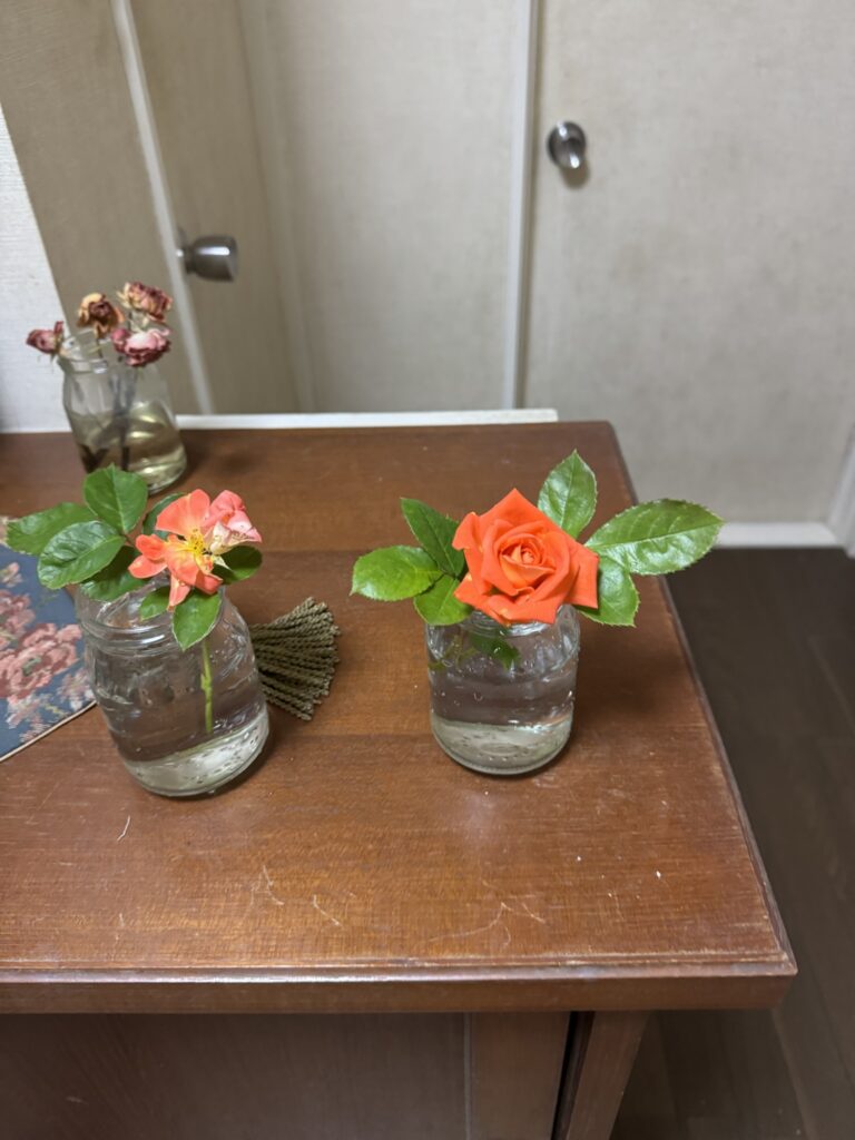 昨日、いつもより少し早く、バラが二つ開花しました。