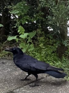 裏庭に出ると、ハシボソガラスのお母さんが来ていました。